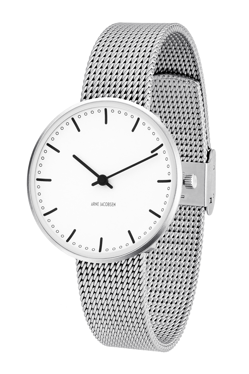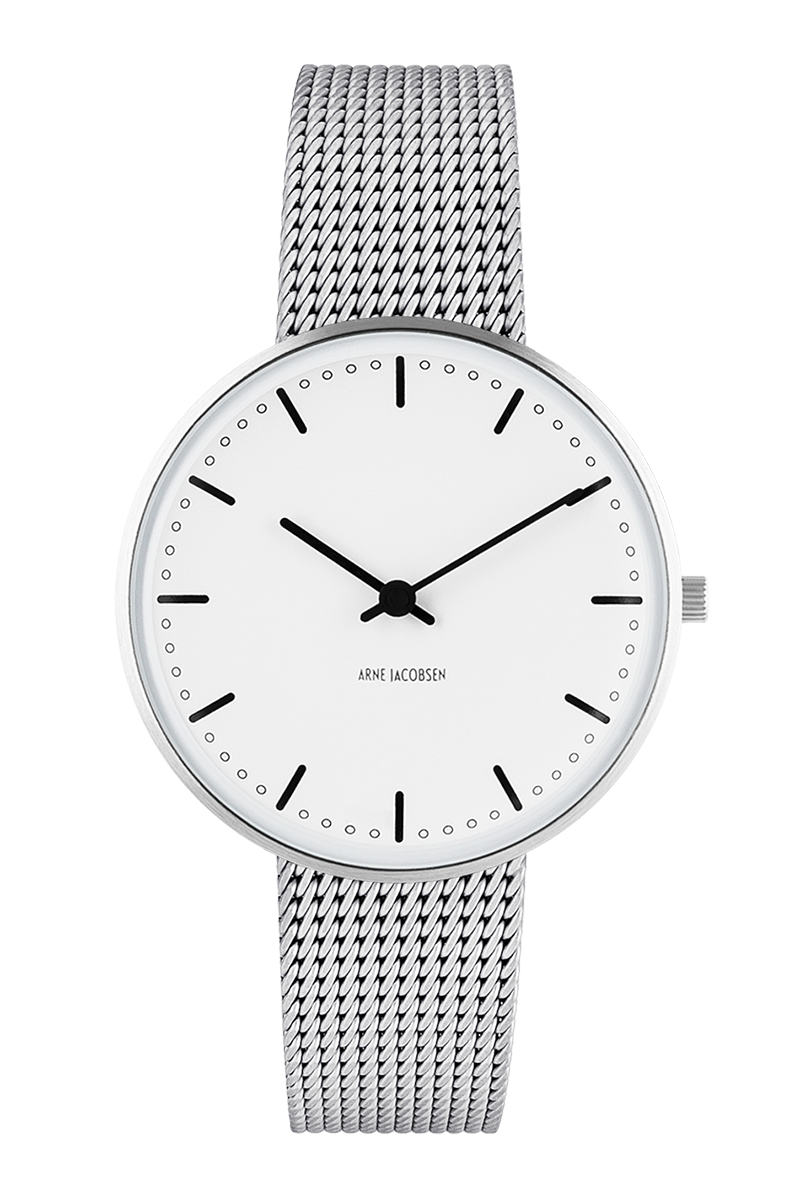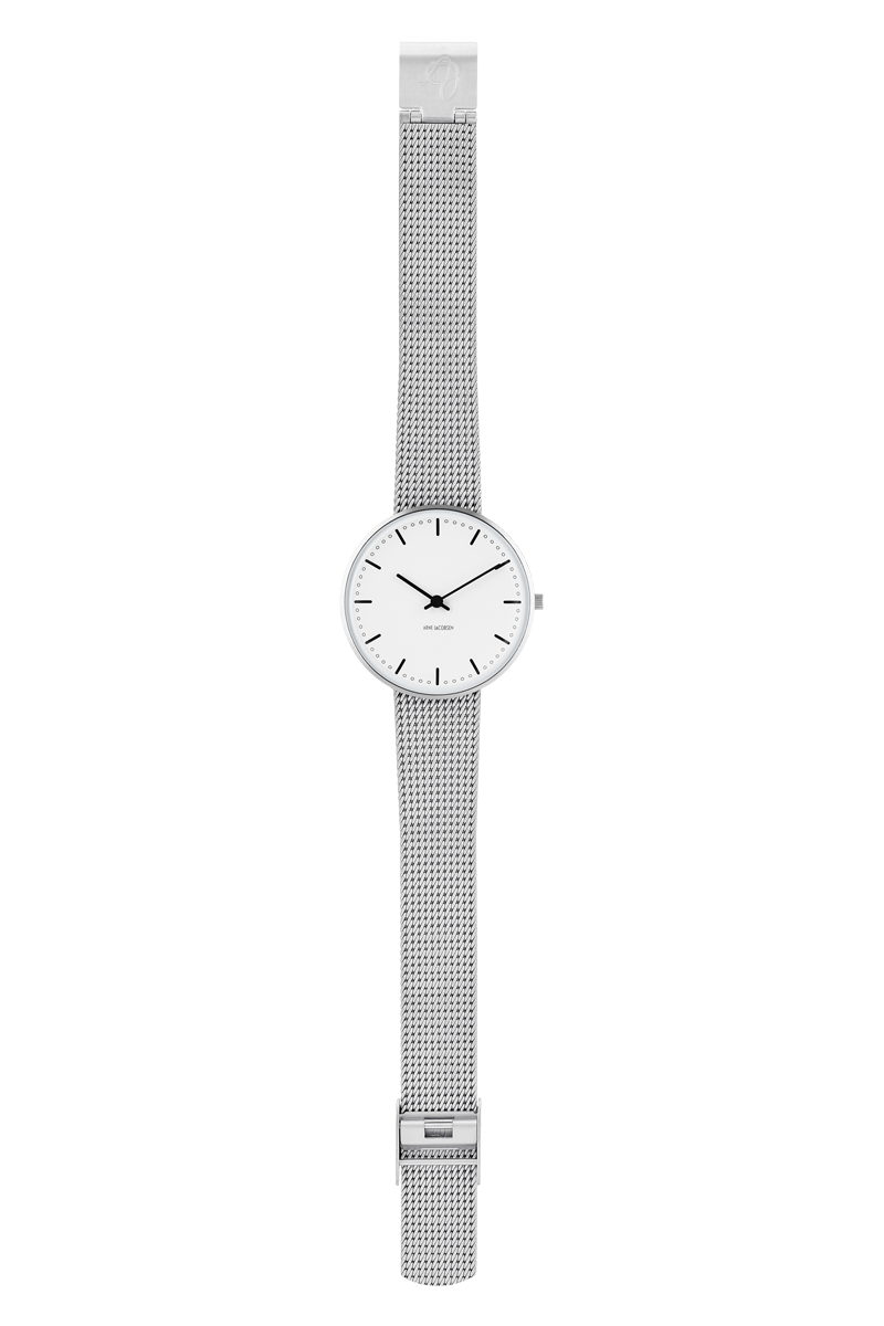 Arne Jacobsen City Hall armbåndsur med 16 mm mesh-rem i mat stål.