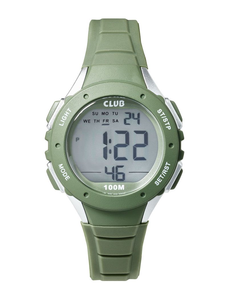 Urværk Digital Rem/Lænke Gummi, farve Glas Plastic Vandtæthed 10 ATM (100m) Skivefarve Grøn Urkassefarve Grå Urkassemateriale Plastik