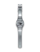 | Ved at trykke på en af urets knapper, justerer viserne sig, så der er frit udsyn til urets funktioner, eks. dato og stopur |