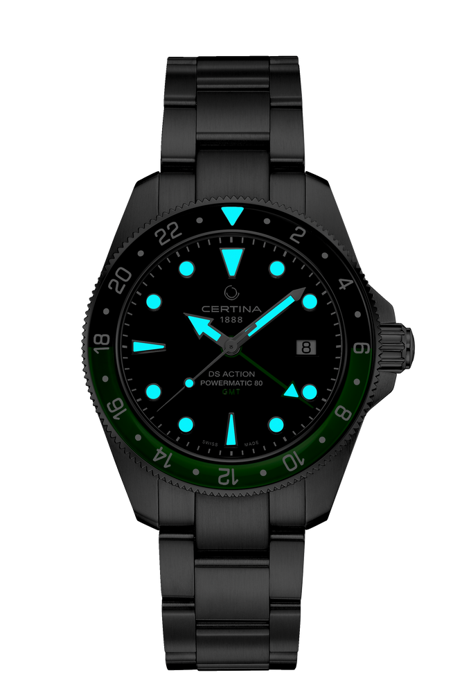 Notoriously accurate and extremely tough: The highly robust DS Action GMT Powermatic 80 is the perfect travel companion. The separate 24-hour display makes it easier than ever to keep track of the time in a second-time zone.