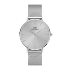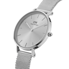The Petite Unitone features a seamlessly matching silver mesh strap and watch dial. Crafted with polished stainless steel, designed to make a delicate statement. A timepiece that sets the tone for any occasion.