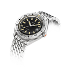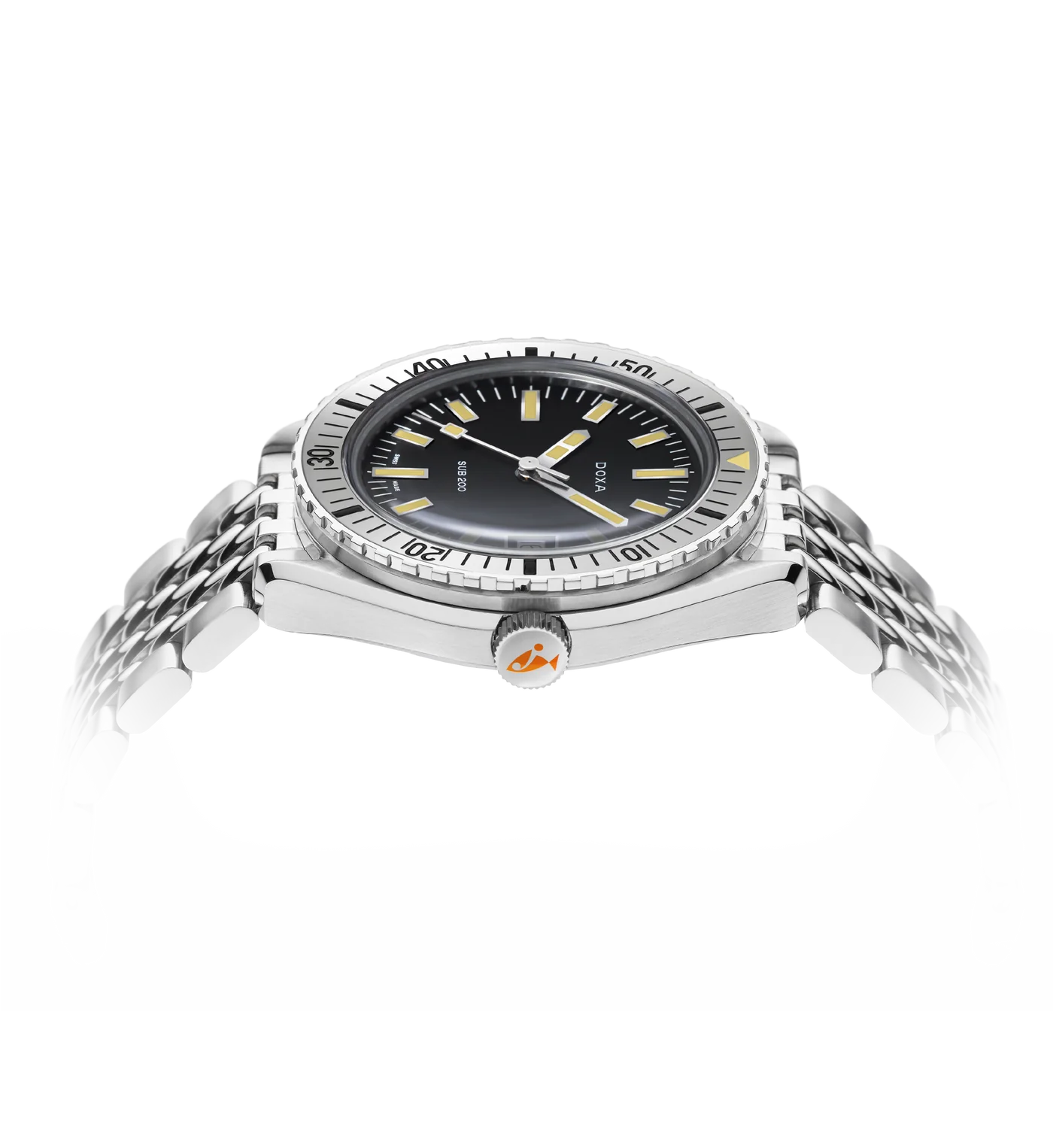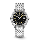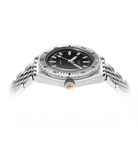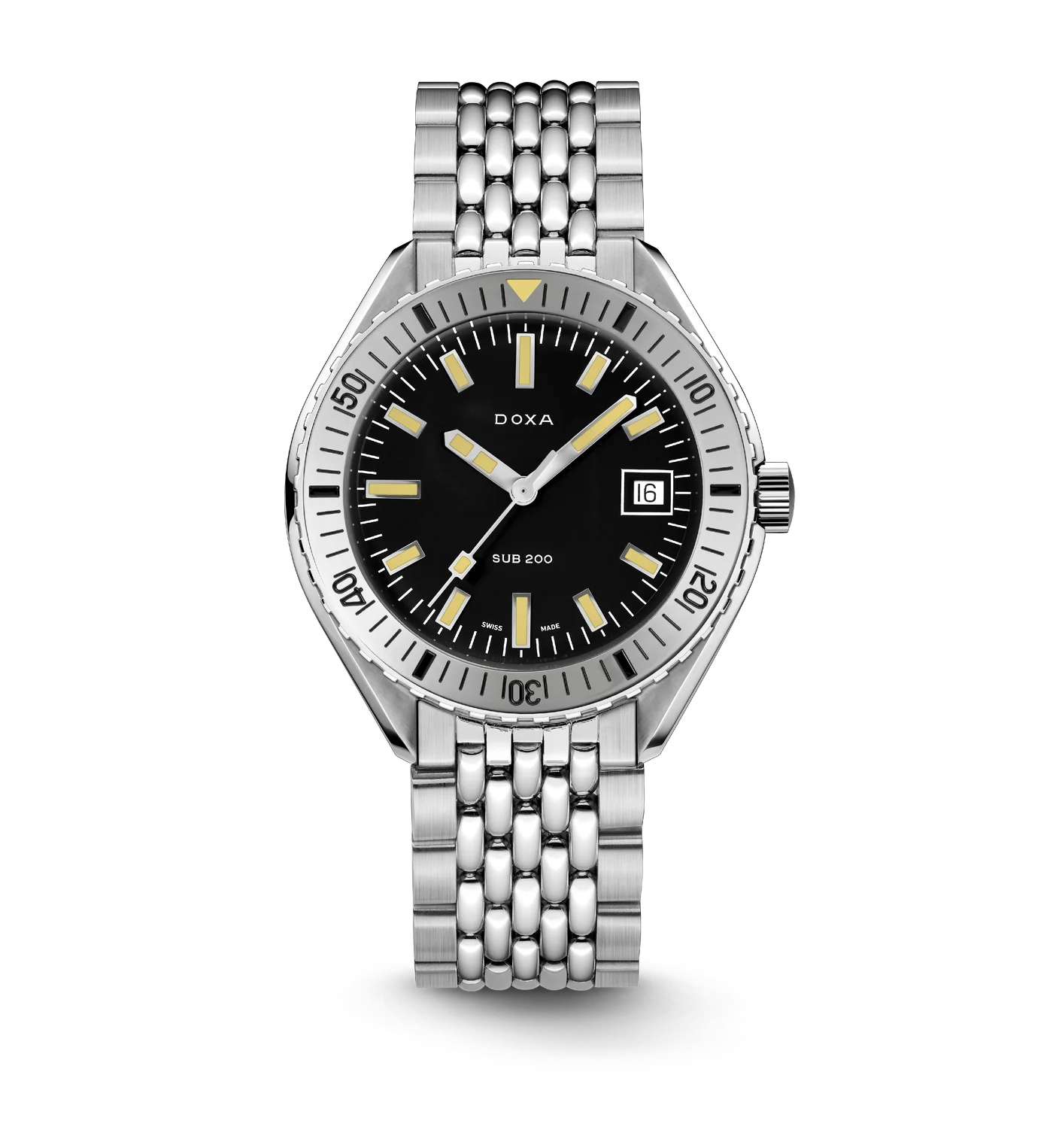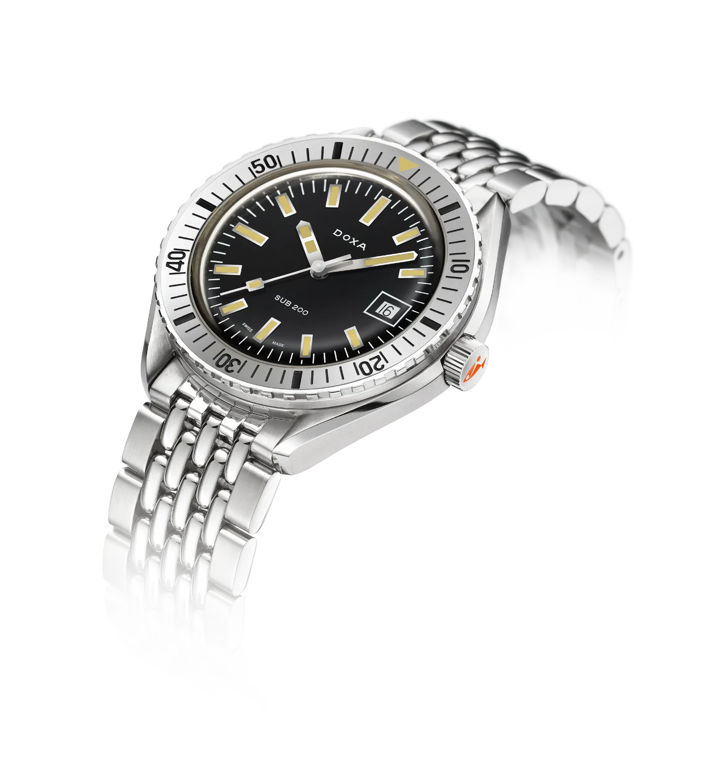Unveiled at Baselworld 2019, this 3-hand diver's watch has a case made of highest-quality 316L stainless steel. At a diameter of 42 mm, the SUB 200 is topped by a scratch-resistant sapphire crystal with an anti-reflective coating and the distinctive curvature of the domed plexiglass used back in the day. Waterproof to a depth of 200 meters (20 ATM), the model features a unidirectional rotating bezel. All the elements providing dive-relevant information, including the bezel, have a Super‑LumiNova® luminescent coating.