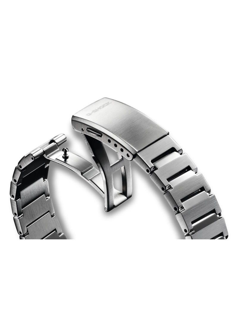 The GST-B1000D carries on the G-SHOCK heritage of tough construction and design rooted in functional beauty, reconstructing this legacy to achieve a polished, sleek expression. The bezel goes logo-free for a clean, modern look, while three separate finishes — vertical hairline, circular hairline, and mirror polishing — create a rich and sophisticated textural appeal that changes as light is reflected at different angles.