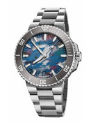 In the Aquis Date Calibre 400 43.5 mm, it’s wrapped in a stainless steel case and presented on a stainless steel bracelet with an innovative extendable clasp. It features a rotating bezel, screw-down crown, lumed details, and is water-resistant up to 30 bar (300 metres).