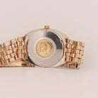 • Skive: Flot sølvskive med dato og gyldne indeks og visere
