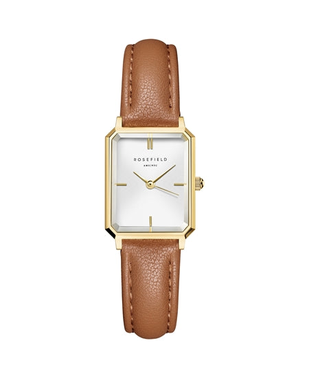 Urkasse / lænke: Rustfritstål gulddoublé - Brun læder