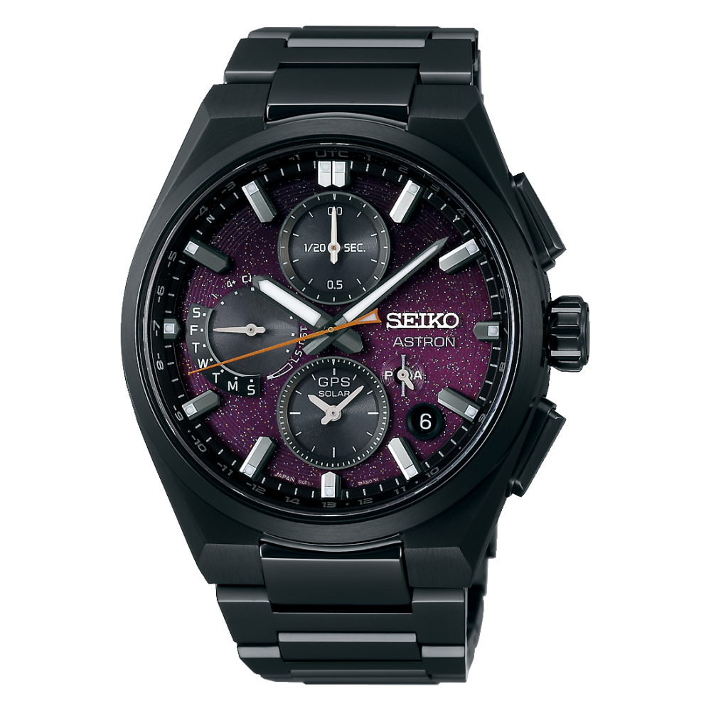 Cherry blossoms at night: De nye limited edition-modeller er en hyldest til kirsebærblomster under en stjerneklar himmel. Den glitrende lilla urskive symboliserer dansende blomster i vinden, som de ser ud fra et satellitbillede. Desuden er rehauten dekoreret med et mønster, der minder om stjerneskud, der bevæger sig hen over nattehimlen.