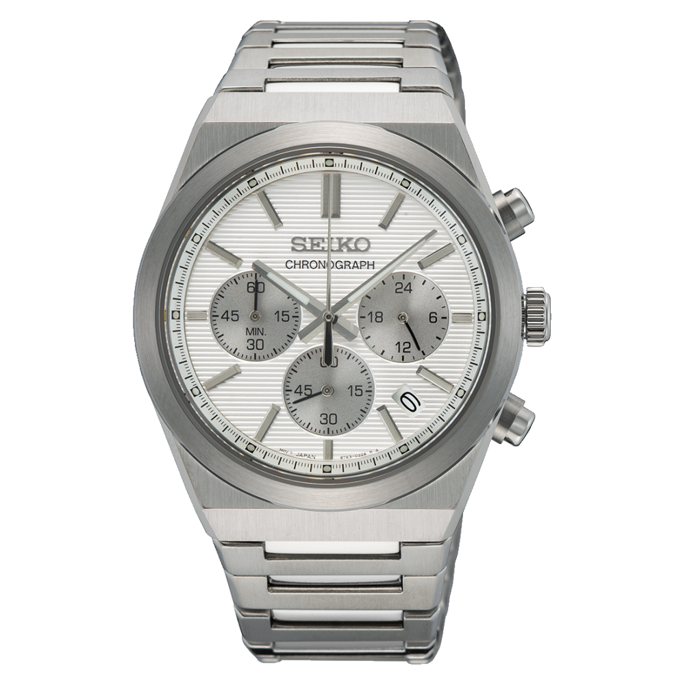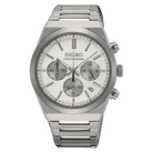 Denne SSB453P1 kvartskronograf fra Seiko SPORT-kollektionen tilbyder en lang række funktioner. På urskiven er der tre tællere, som er typiske for kronografer. Denne model er udelukkende fremstillet i rustfrit stål og er også meget robust med safirglas, skruebund og vandtæthed på 100 meter.