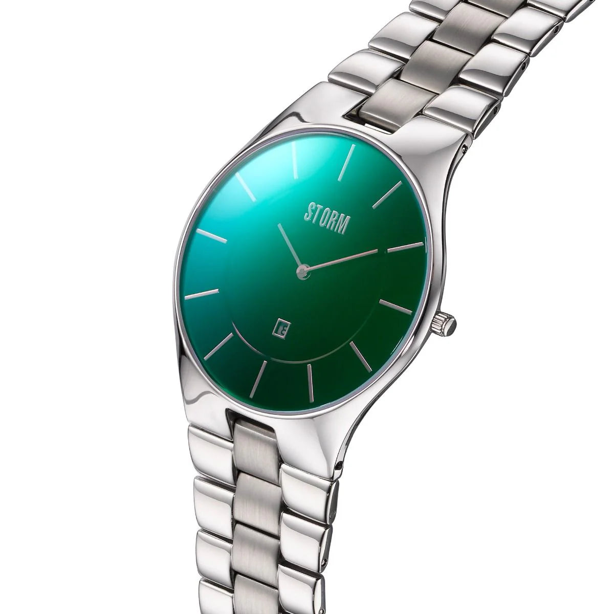 STORM Styro er et klassisk ur med et moderne twist. En fantastisk gradueret urskive i en række intense farver har fotokromisk glas. Denne teknik stammer fra vores laserglasteknologi og gør det muligt for urskiverne at skifte farve ved forskellig belysning. Styro er vandtæt til 50 m og har et tykt meshbånd lavet af matsort rustfrit stål.