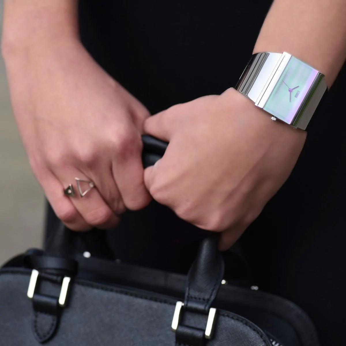 STORM Starletti er et slankt ur med signatur STORM-stil. Den rektangulære skive har isfarvet kant til kant glas og en glat højpoleret rustfri stålrem, som passer smukt til håndleddet.