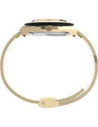 Perfect for everyday wear with a chic, neutral color palette. Inspired by Timex´ archival Q Timex designs from the age of Quartz, they stayed true to the original details – including a gold-tone rotating bezel and a domed acrylic crystal. The 36mm gold-tone stainless-steel case is paired with a cream dial and a comfortable woven gold-tone stainless-steel bracelet that's easily adjustable for a look and fit you’ll love.