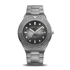 Den super flade urkasse og lænken med brede led er lavet af robust, børstet rustfrit stål, og den roterende lynette, sammen med de selvlysende visere og indeks, giver uret et markant og sportsligt udtryk.