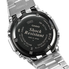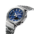 Add a touch of colour to your classic style — a full-metal G-SHOCK with vibrant blue dial. The dial is finished in metallic blue vapour deposition, adding a striking touch of originality to the iconic stainless-steel bezel and band design. Buffering components made of fine resin are installed between the bezel and case, with a three-pronged structure dispersing shocks to the band's connecting pipes, to deliver all the shock resistance of a G-SHOCK in a full-metal timepiece. And the case back features a screw-lock construction to ensure a tight seal. The metal band pieces are dimpled to reproduce the look of the resin band design of the very first G-SHOCK. The stainless-steel bezel is meticulously forged, cut and polished for stunning depth and dimension. A hairline finish is applied to the bezel top and a mirror finish to the bevelled edges, creating a smart metal timepiece that truly shines.